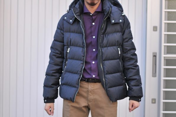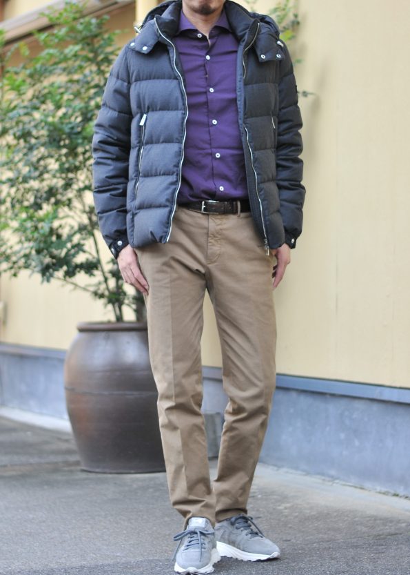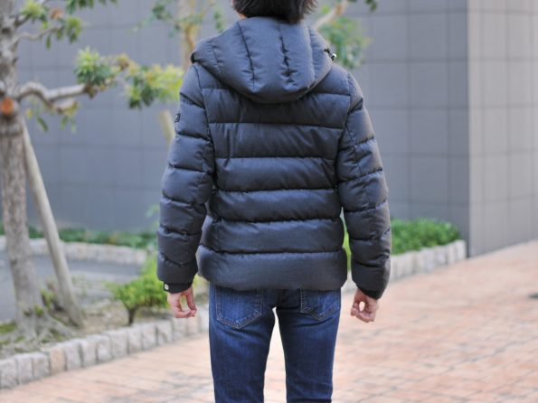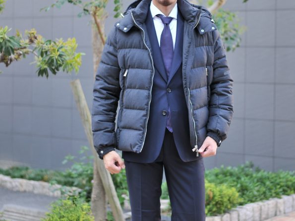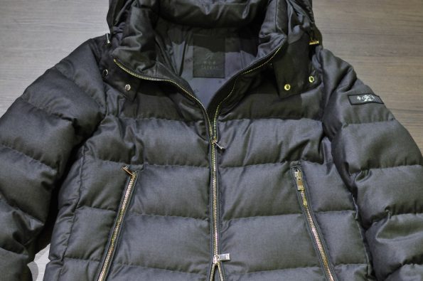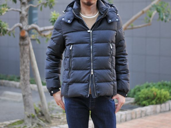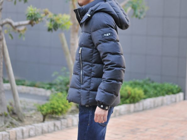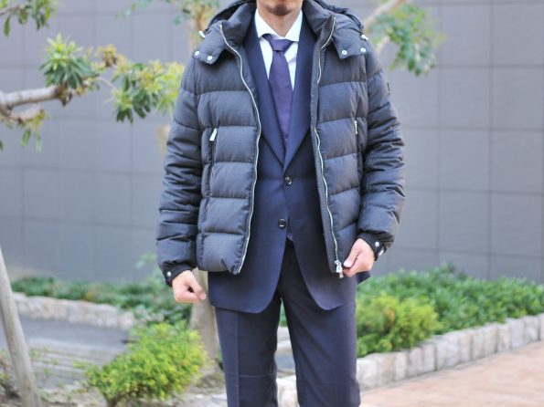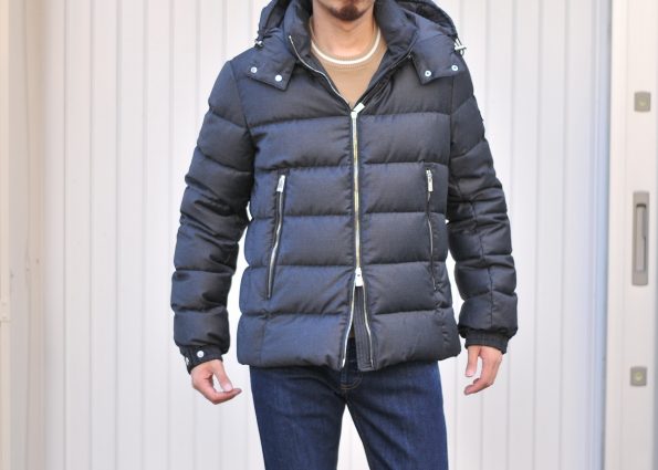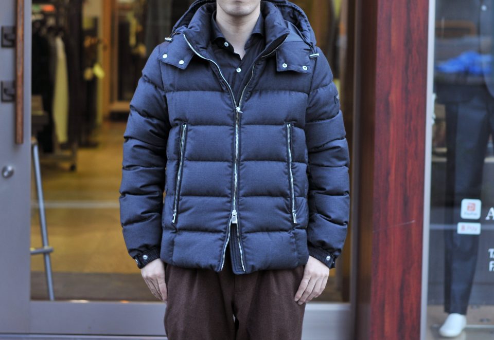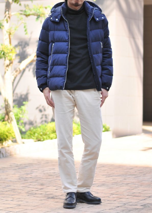 そしてスーツでも合うと言われる所以は圧倒的高級感のある生地故の物かも知れません!また、ダウンに採用する際重くなりがちなウール素材ですが、ドミツィアーノはその点軽い! 柔らかく張りは抑えめ…なのに、撥水してくれるという、見て、触ってと、驚きが多いマテリアルなのも良い所!(^^♪