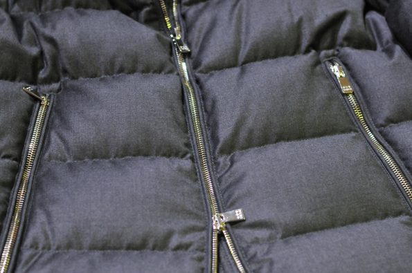 「デザイン」は見て頂いたように数あるダウンの中でも物凄く綺麗です!なんといいますか、無駄が全くありません!その中でもひと際目を惹くのはジッパー部分ではないでしょうか?まるでシルバーアクセサリーかのようなラグジュアリー感が漂っております!実際にジッパーは拘っており、イタリアの世界一美しいと名高いLAMPO社製のファスナーを使用!ARMANIやPRADA・CHANEL・DOLCE&GABBANAなど有名ブランドで使用されているファスナーであり、シルバーメタルパーツ一つで上品で高級感がありますね!
