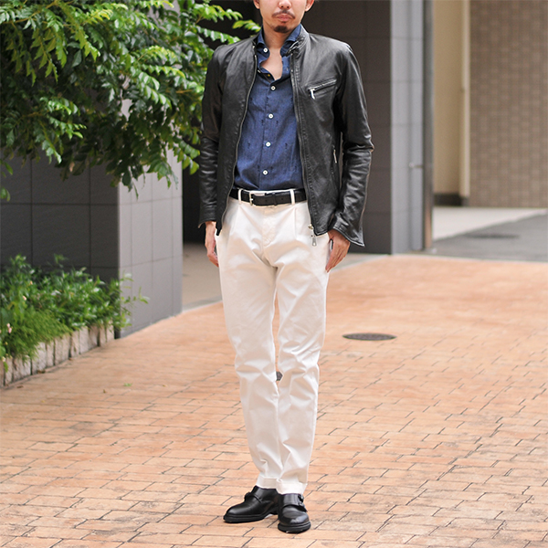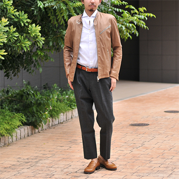 足元をレザージャケットに合わせてあげると、コーデに統一感が出てレザージャケットを使用しながら爽やかな着こなしになりますよ♪
