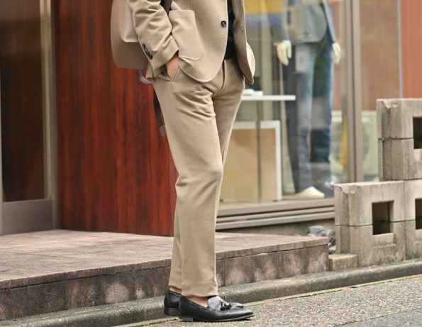 上品さとラフさが兼ね備わったパンツとなっております。プライベートなシーンだけでなくビジネスのジャケパンスタイルにもハマるパンツです。