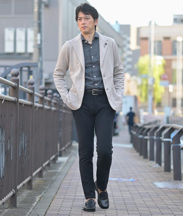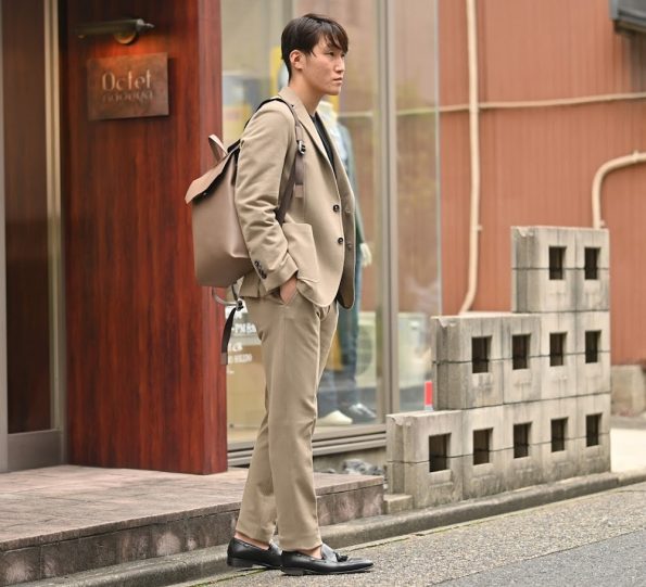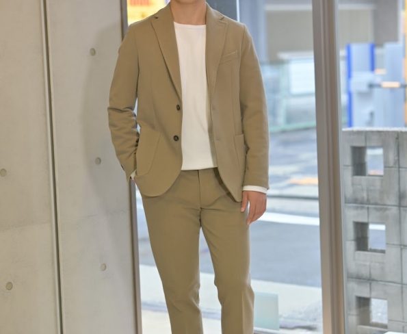 まずは、共生地のジャケット、パンツでセットアップで着こなすコーディネートはテッパンではないでしょうか。