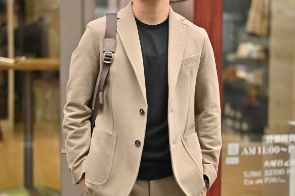 今回ご紹介のアイテムは定番の生地を使ったセットアップになります。イタリア人らしくジャストサイズでピチッと着こなしても良いですし、流行のオーバーサイズ気味に余裕を持たせる着用感で今っぽい着こなしで良いのでお好みの着方、着用感で選んで頂ければと思います。