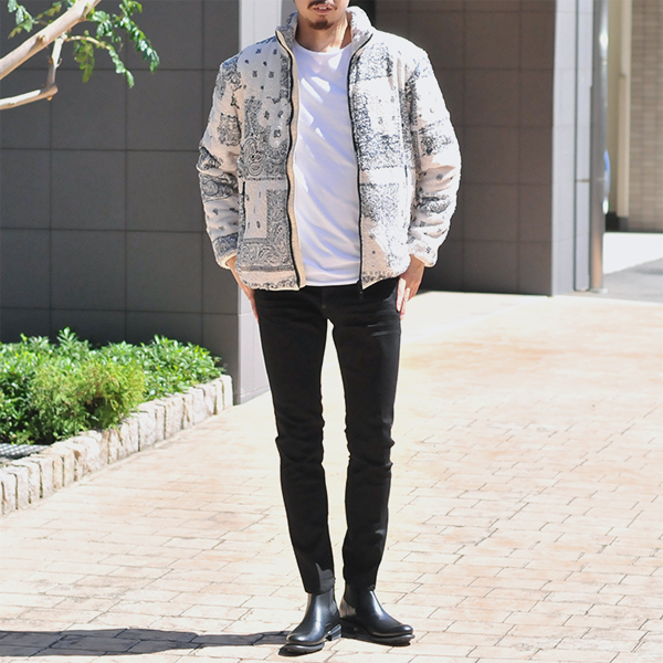 カジュアルさが強い、モコモコパーカーで更にペーズリー柄とインパクト大なアイテムになっています。