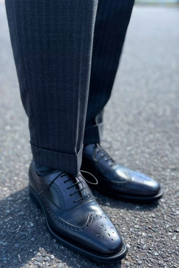 靴はプレディビーノのフルブローグ。全体的にややブリティッシュな雰囲気も纏わせてます。