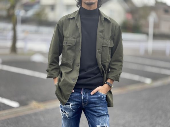 細過ぎず、緩すぎない適度なゆとりのあるサイジングなので、一枚使いだけでなく ジャケットなどのインナーとして合わせても、もたつきが無い絶妙なフィット感です。(o^―^o)ニコ
