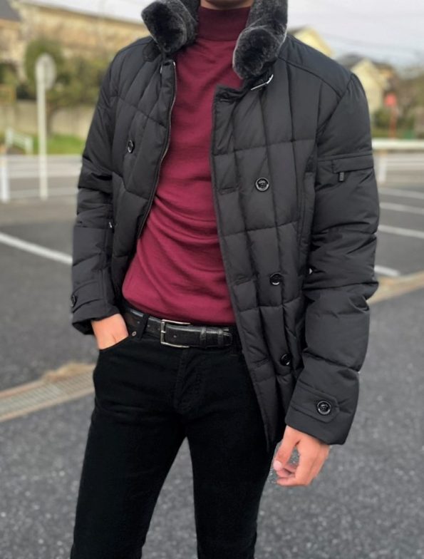 タートルネック程首の詰まりはなく、かといってクルーネック程カジュアルによらず、適度なドレス感を残しつつもすっきりとしたラインが、モックネックの最も魅力的な所です。