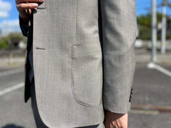 先ず一番わかりやすいのはポケットです。今までのゼニアの生地を使用した、オリジナルスーツではポケットは基本フラップポケットでした。