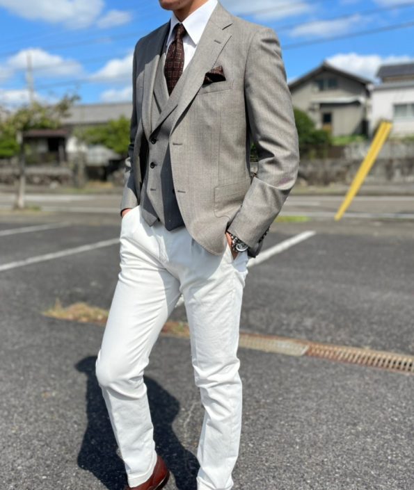 ジャケットとジレはそのままに、パンツを変えてみました。