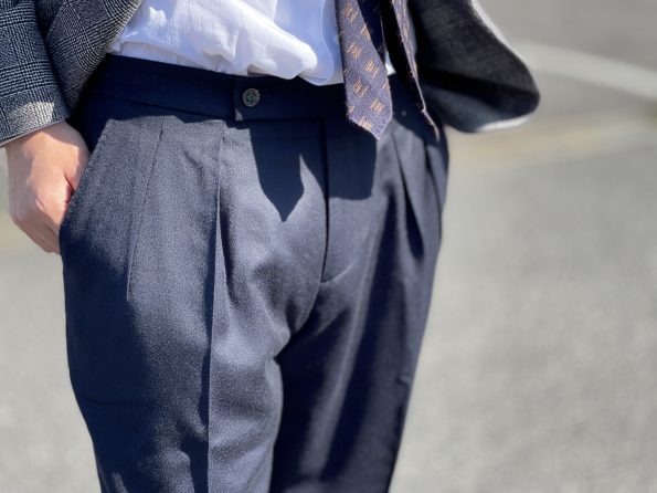 2プリーツ仕様の腰回りはやや緩めで、股上深く全体的にリラックスしたテイストに仕上がっております。