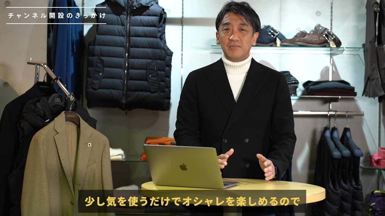 そして僕のチャンネルはなるべくシンプルに服の良さ・楽しさについてお話できたらいいなと思いますし、実際にイタリアのアイテムなど良いアイテムを長く使って服を楽しむということは大人の男性においては凄くかっこいいんじゃないかなと思うので、ぜひ何かヒントを得て服に興味を持っていただけたら嬉しいです!