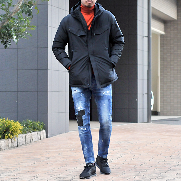 ディースクエアードのデニムで少し遊びを利かせる事によりこなれ感が楽しめます。