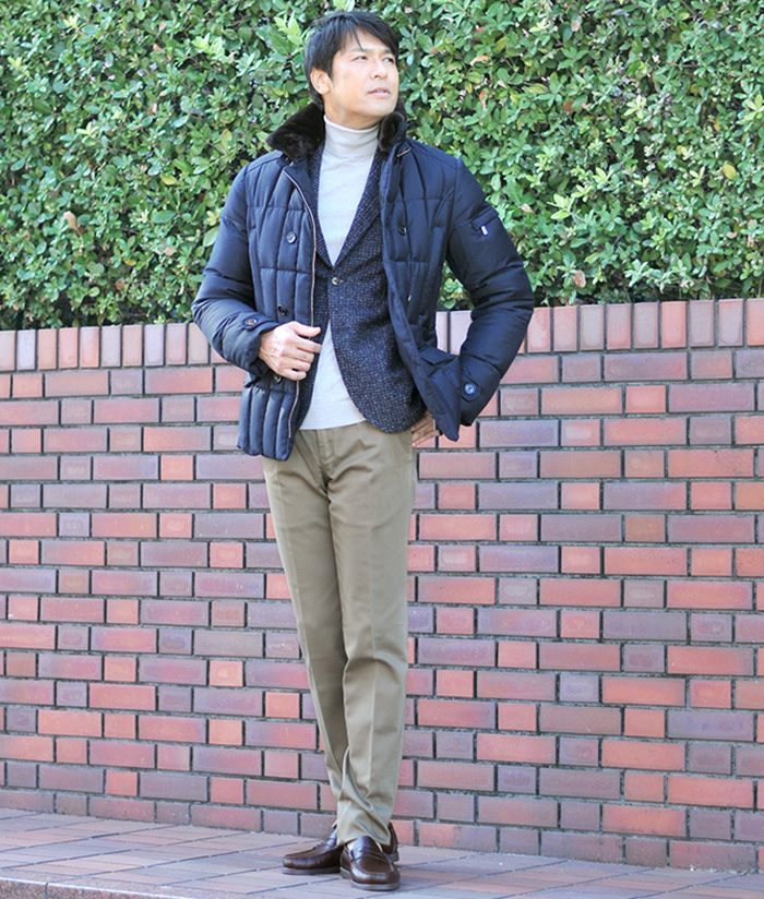冬はきれいめなダウンジャケットと合わせても良いと思います。