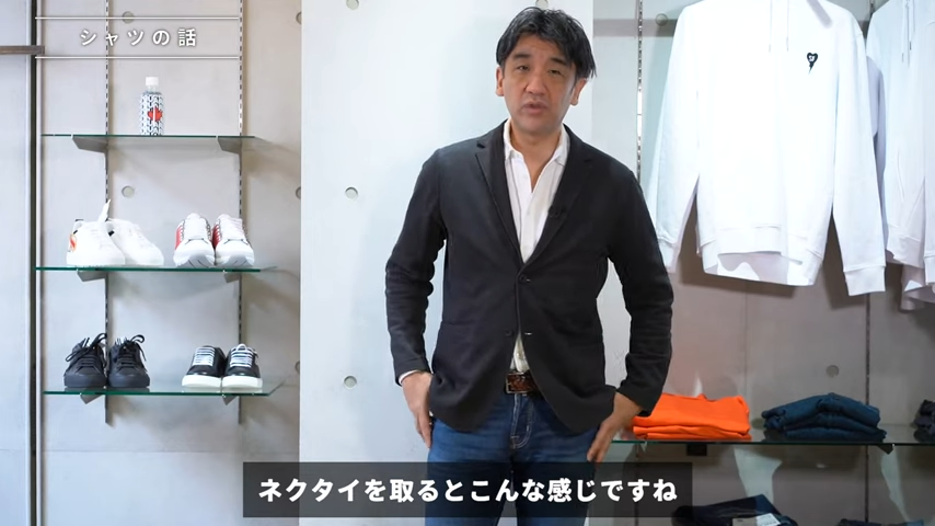 シャツにジャケットを重ねる、もしくはネクタイをつけるっていうのもほぼ同じような意味なんですけれど、よりビジネスに近づいていくということですね。