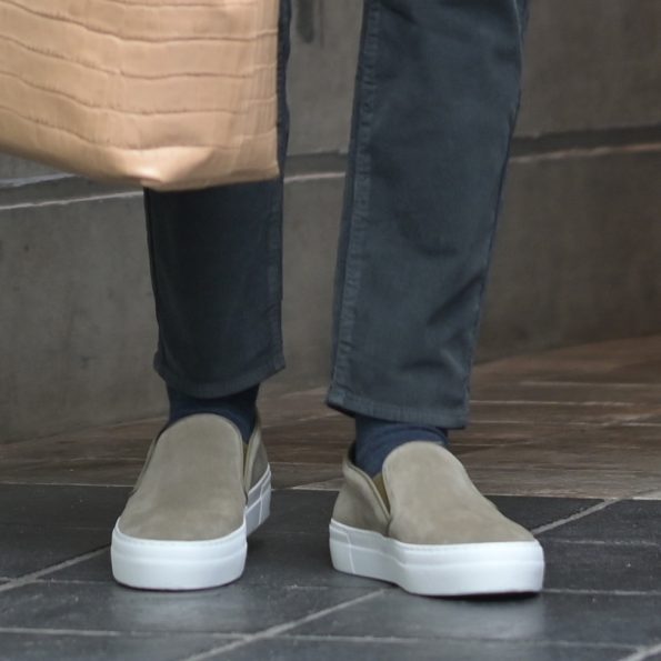 どんな服装にもハマると噂の上品なスリッポン。スラックスにもデニムにも合わせて欲しいと激押しできる逸品!素材は上質なカーフスエードを採用し、スポーティさとモダンさを良い塩梅でバランスをとっています。汎用性に長けたスリッポンです。