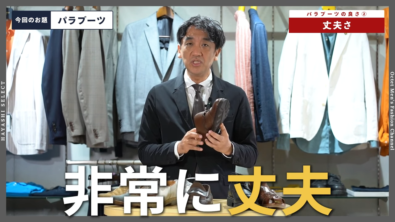 僕たちオクテットのチームはみんなパラブーツが大好きなんですね。自分自身も10年以上、革靴といえばパラブーツというぐらいです。スーツに合わせるドレスシューズも持ってはいるんですけれども、履く機会というのはだんだん少なくなってきて、革靴といえばパラブーツという状態なので、大好きなパラブーツについて今日はお話しさせていただこうと思っています。