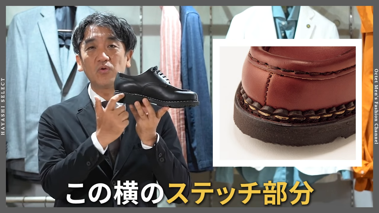 パラブーツというのは、もう100年以上前にフランスで創業したシューズメーカーになるんですけれども、そのパラブーツ以前のヨーロッパはこういうアッパーがレーザーのシューズは必ずソールはレーザーだったんですね。ですからドレスシューズと言えばレザーソールというのが当たり前で、今でもヨーロッパの主たるメーカーさんはドレスシューズのソールはレザーだよというメーカーさんが結構多いと思います。