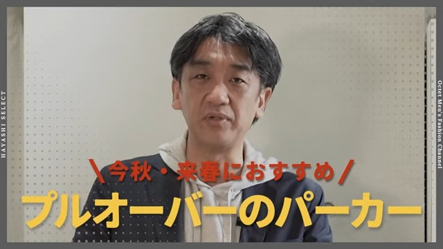 何でプルオーバーなんだろう?というのがあるかなと思うんですけど、また具体的な良さは最後にもお伝えするんですが、一つ大人の男性が着てプルオーバーのパーカーがいいなと思う理由は若々しく見えるということが1点。もう1点は体型がカバーできてスマートに見える。こういった所がいいんじゃないかなと思っています。プルオーバーのパーカーはちょっと子供っぽい印象があって着るの嫌だなと思われる方も多いかもしれないですけれども、この秋プルオーバーのパーカーにぜひ挑戦していただきたいなと思っています。