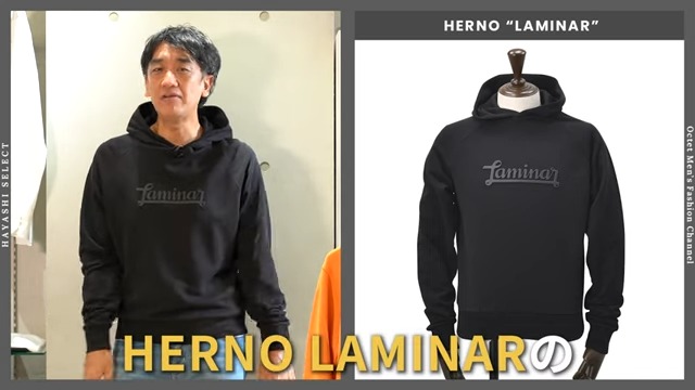 2点目はブラック。HERNO LAMINARのパーカーを着てみました。先ほどライトグレーを着てみたんですけれども、秋の立ち上がり、これから冬に向かって行くにあたって、もう一点あったら便利だなと思うのはダークトーンで黒に近いパーカーがあると僕は格好いいんじゃないかなと思います。そしてソリッドのブラックみたいな、洗いのかかっていないソリッドのアイテムというのは、よりエレガントに見えるんですね。洗いが掛かって色落ちがあるというような服はよりカジュアルに見える。これがまず基本にあるので、ソリッドなブラックというのはすごくエレガントなアイテムだということです。