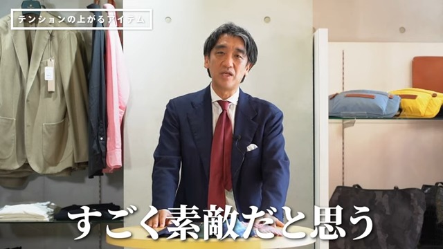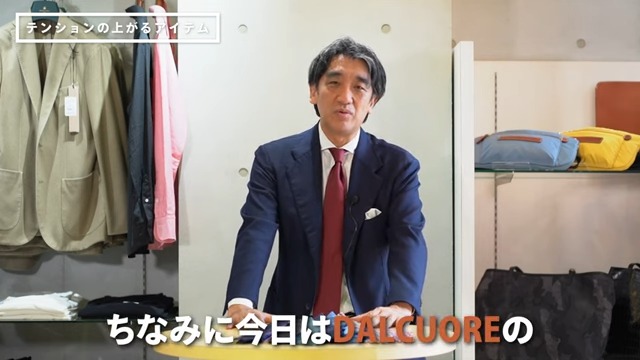 実際に自分もあんまり穿かないんだけど「今日はこれだね!」みたいなパンツってあったりしますし、ちなみに今日はDALCUOREのネイビーのジャケットを着ているんですけれども、これあんまり着ないんですが、今日はたまたま商談がありまして、結構大事な商談だったりするので着ています。