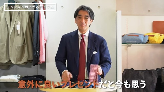 プレゼントでネクタイをあげるっていう文化も段々なくなってきた気もするんですよね、ネクタイをする人がいないから。だけどやっぱり、とっておきのネクタイって自分が選んだネクタイじゃなくて、意外に誰かに貰ったネクタイで、この人に貰ったからこれはとっておきのネクタイだよとか、やはりそういう貰った側としたら、このネクタイは誰に貰ったかは絶対覚えているので、そういう意味では意外に良い素敵なプレゼントじゃないかなって今でも思ったりしています。
