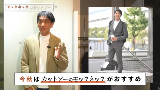 まず、なぜモックネックか?というお話なんですけれども。以前にも動画でお話しさせていただいたと思うのですが、やはりファッションはシーズンというのは大事じゃないかなって思っているので、秋冬はパッと見で秋冬っぽい、春夏はパッと見で春夏だなって思うようなのを視覚から訴えるというのは結構良いポイントじゃないかなと。その上でこのモックネックをうまく着こなしていただいたら格好いいんじゃないかなと思っています。