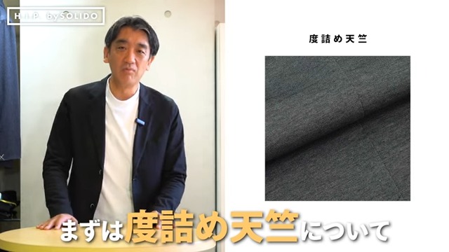 そういう組み合わせのかっちりしたジャケスラっていうものしかなかったんですが、こちらの度詰め天竺はコットン100%なんですけれども、コットンでセットアップできることができるというものをリリースしたんですよね。