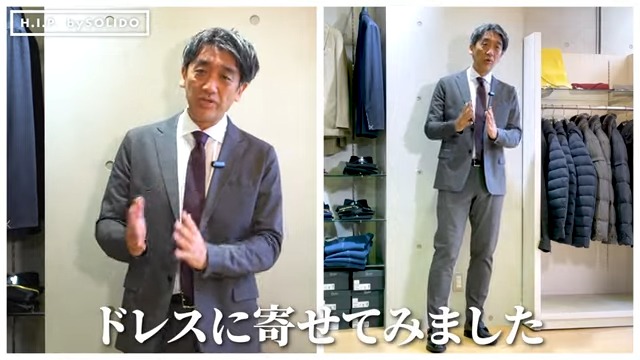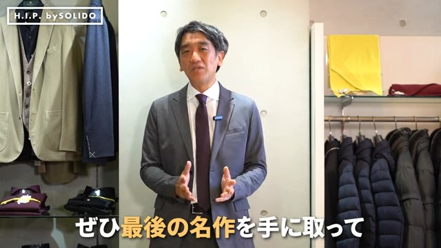 そしてこのジャケットを単品で使っていただく時もあります。またパンツを単品で使っていただく時もあります。といった形で幅広くで使っていただくことで、非常にコーディネートのしがいもあるアイテムだと思いますので、是非ですね、今シーズンで終わってしまうH.I.P. by SOLIDOっていうブランドなんですけれども、最後のこの名作を手に取って実際に着ていただけたら嬉しいです。