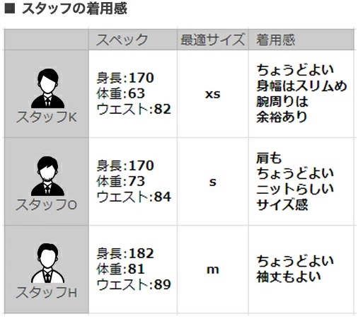 サイズ感は、スペック的に少し大きいのでワンサイズ落とすと丁度良いかと思います。ブランドによっても色々なサイズを着ると思いますが、普段Mサイズが多い私は、今作はSサイズが丁度良かったです。他のスタッフもワンサイズ落として最適なサイズでしたので、ぜひ参考にしてみて下さい~