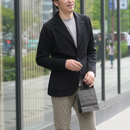 今作は、ニット素材でもカジュアルになり過ぎず、且つキレイ見えもする万能なアイテムだと思います。カジュアルに着るも良し、キレイ目に着るも良しの様々なシーンで着用できる点は、嬉しいですね。