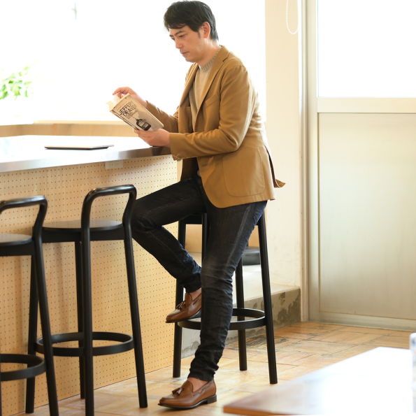 仕立てとキャメルの色合いがめちゃくちゃ馴染んでます。このキャメル特有の色気が良いんです。