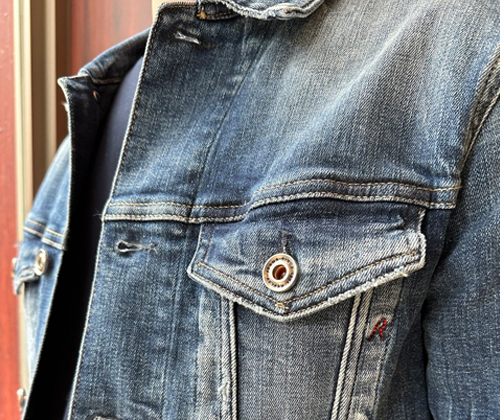 非常に自然なエイジング加工で、まるで自分でリジットから育てたようなリアル感。ポケットや袖にもダメージが入っており、細かい部分の拘りが半端じゃないですよ!!