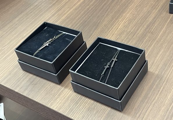 クロスですが、細く小さい為ミドル世代の男性にも付けやすいデザインとなっております。