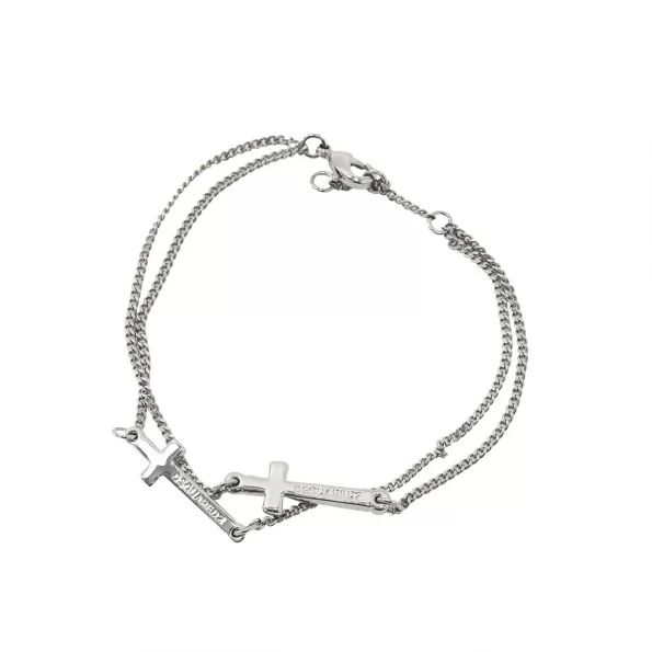 今作は、ホワイトとブラックで展開しております。迫力のあるモチーフプレートが目を引きますね。遊びの効いたディースクエアードらしいインパクトのあるブレスレットになります。