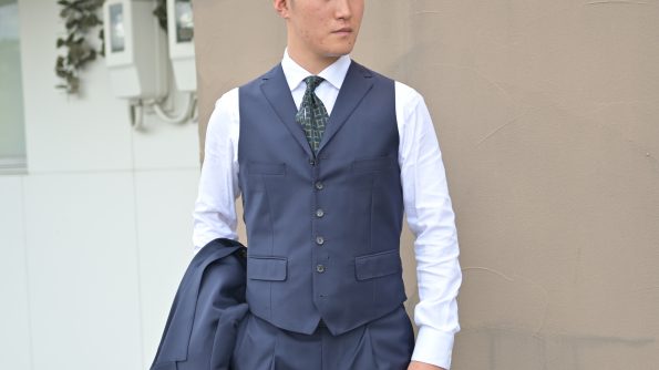 僕はジレは断然襟付き派です。最もクラシックな3Pのスタイルの中でも、ひと際エレガントな雰囲気を醸し出してくれます。