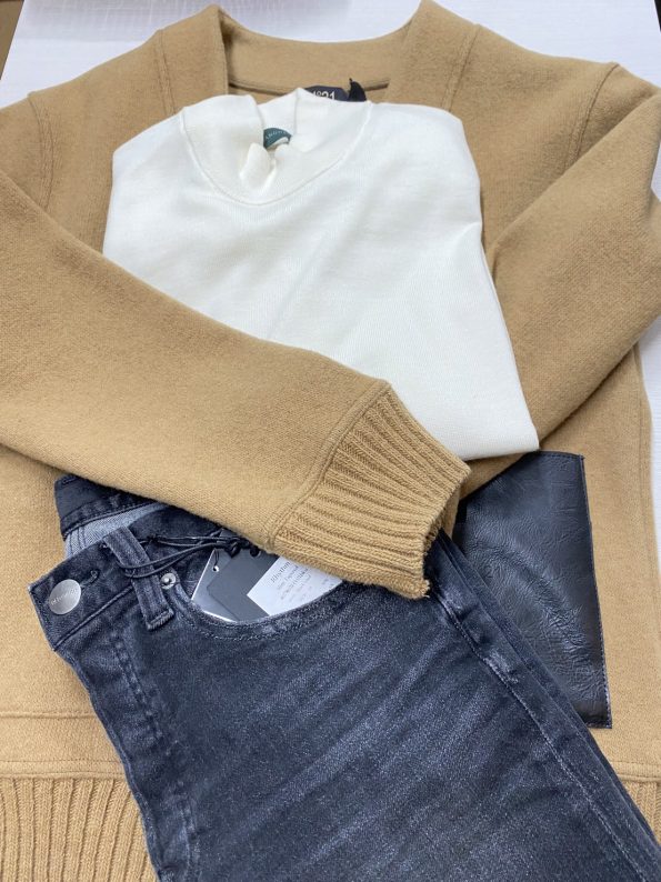 真っ先に思い浮かべたのはアイボリーのモックニット。やはり外せない。