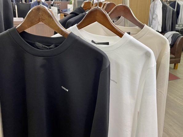 定番的な長袖のクルーネックカットソーもTATRAS(タトラス)の手にかかれば、洗練されたデザインでラグジュアリーに仕上がりになりますね。