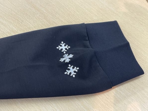 左胸、左袖にブランドロゴがシルバーカラーで施してありブランド主張が強すぎない点は、個人的に気に入っているポイントです!!