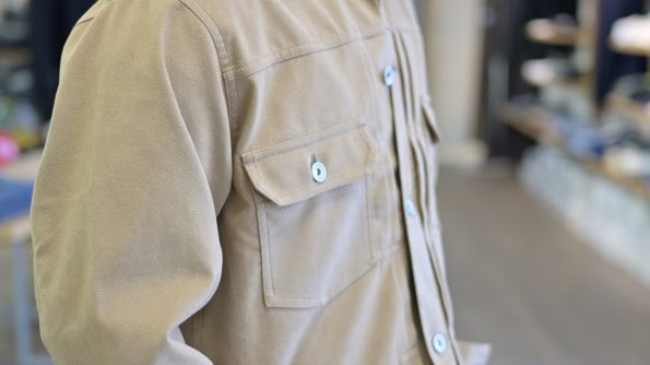 今作のブルゾン、、実は、リサイクルポリエステルを使用したフェイクスエードになります。その為、本革だともう少し値が張りそうなアイテムですが、そこは人工皮革ですのでコストパフォーマンスも抜群ですね。