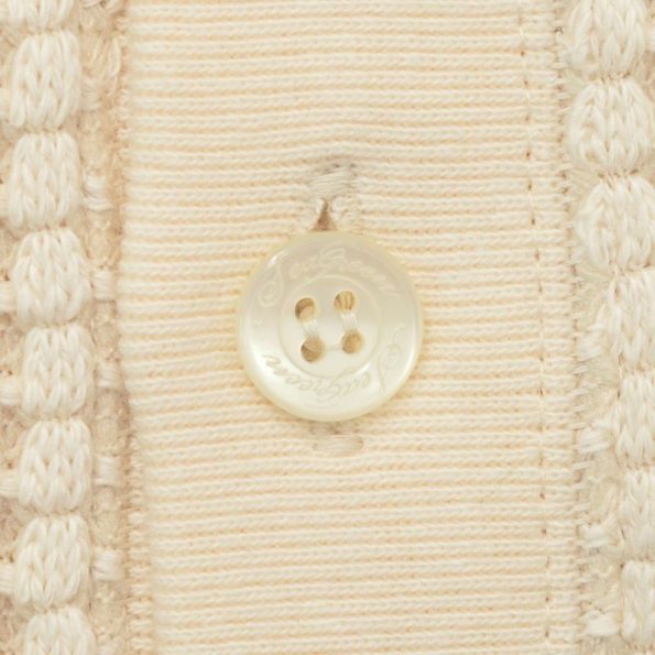 袖や裾、そして、ネックから繋がる前立て部分にリブが施されております。ポコポコとした凹凸感とメリハリのついた仕上がりです。しっかりと伸縮性があるリブですので、着用や洗濯を繰り返してもヨレも少ないですよ。