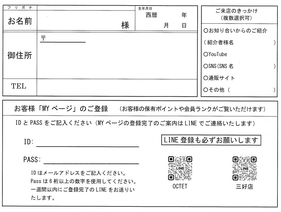・実店舗ご利用時に上記用紙をご記入いただけますと「会員登録」となります