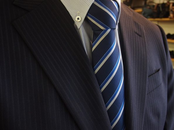 今回は、落ち着いた印象の、ネイビーストライプスーツです。