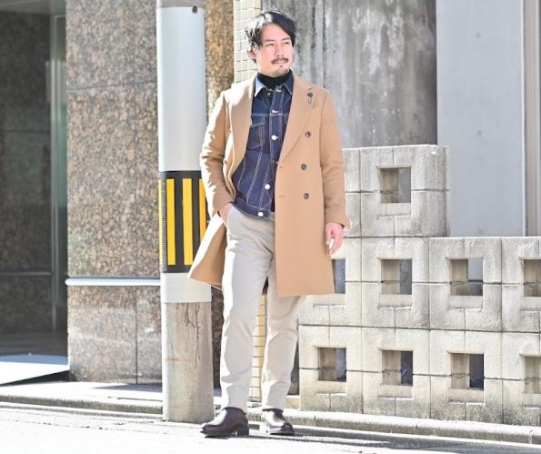 今度は、冬を意識してコートを羽織りジージャンをインナーとして合わせました。
