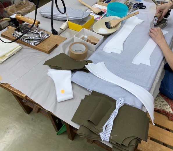 写真はシャツの芯地を縫い付ける作業風景です。このように今も手作業も行いながら、一着ずつ丁寧に仕立ててくれています。