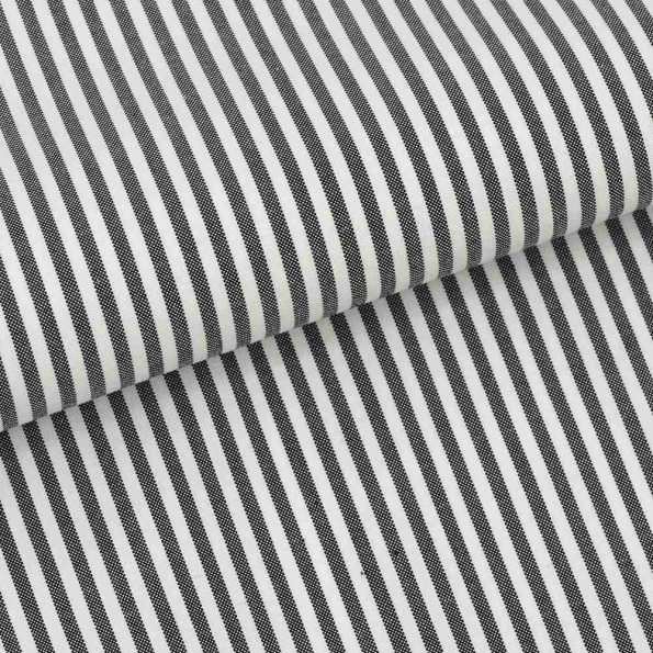 白に対してやや濃いめのチャコールグレーよりの、ストライプ柄です。色も2色ともモノトーン系で構成されているので、案外どんな色を持ってきても合いますよ。後は個人的にはジャケパンスタイルに合わせるのもオススメですね。。。