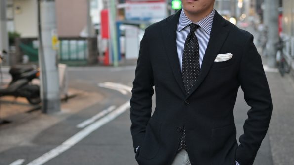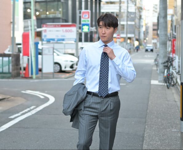 ネクタイはグラデーションでネイビーを持ってくる。こんなスタイルが王道ですが、やっぱりしたくなりますよね。。。