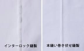 それがコチラ。インターロック縫製と本縫い巻き伏せ縫製でございます。