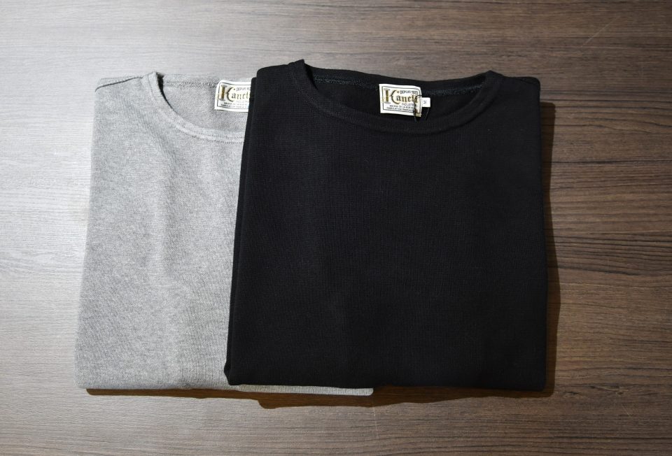 またカネルの良いところは目に見えるディティールだけでなく真骨頂はそのタフネスさだと自分は感じています。コットンニットですから洗濯機でガシガシ洗って問題ないですし、何より着ていくごとにどんどんと体に馴染んでくる感覚があります。ニットですので縮みを気にされる方もいらっしゃいますが、郡山が洗濯機&乾燥機能で試し済みですので大丈夫でしょう!何より彼らは“育てるニット”だと言っているようですが言い当て妙なフレーズだなっと思います。カットソー以上トレーナー未満な肉厚さも個人的には好きです。このあたりの良さは直接触れて頂いたり着用していかないと分からないので、すみませんが店頭でお試しくださいm(__)m