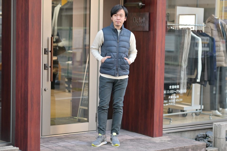 冬はインナー的に着用いただく形でコーディネートするのがおすすめですが、袖や裾部分にブランドアイコンがありますから、ダウンベストなどでレイヤードしてアイコンもしっかり見える形でコーディネートするのがおすすめです。