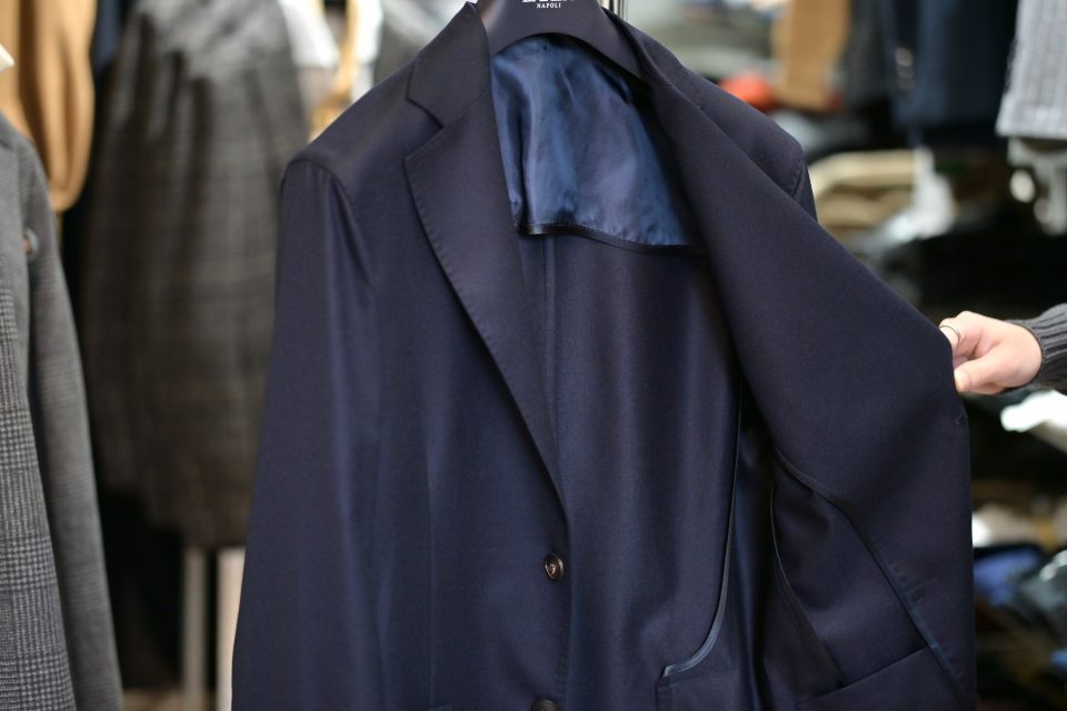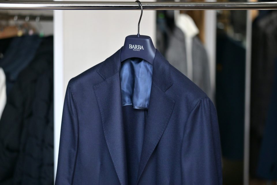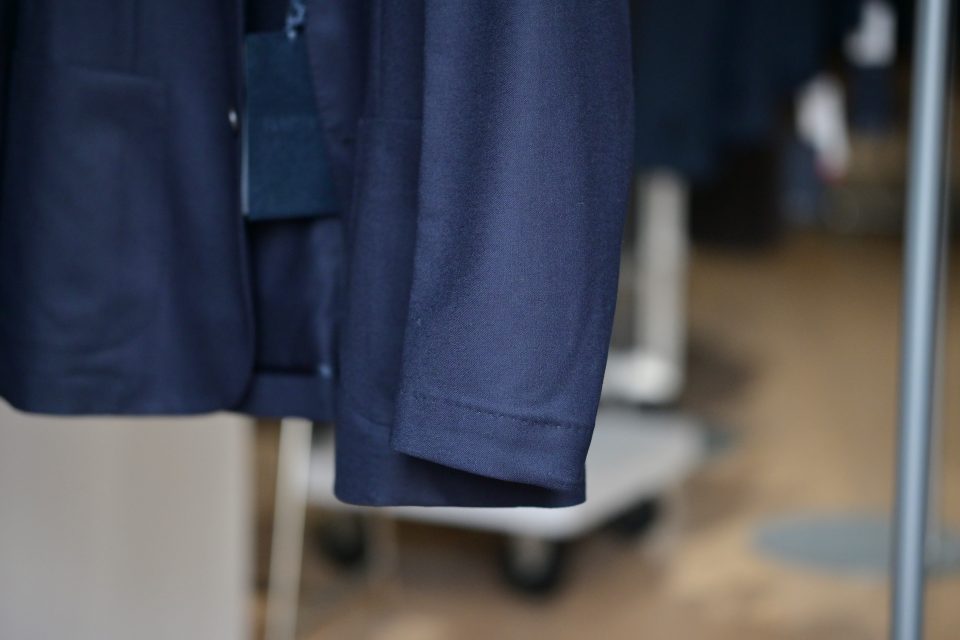まず最初にご紹介したいのは『BARBA(バルバ)のウールジャケット』です。カラーは[ネイビー][グレー]の2色ですね。バルバと言えばご存じの方からするとドレッシーなシャツを思い浮かべる方が多いかと思いますが、今回秋冬ラインナップにはジャケットもございました。ドレッシーなイメージに違わぬウール100%でウールの美しい光沢感が浮かぶジャケットなわけですが、実は表面的なドレッシーさとは裏腹にこの一着仕様はカジュアルなのです。