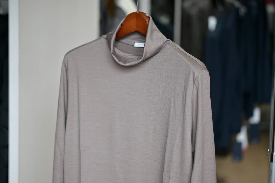 さて最後にご紹介したいのは『nomiamo(ノミアモ)のウールカットソー』です。個人的には優秀さの塊だと思っているノミアモの一着。ざっくり言うとコストパフォーマンスがめちゃくちゃに高いわけです。今回ご紹介しているのはタートルタイプですが、モックネックタイプもございますのでカラバリ含めて下記の通りです。